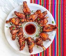 PORCION DE ALITAS EN SALSA ANTICUCHERA ACOMPAÑADO DE AJI PARRILLERO Y PAPAS FRITAS