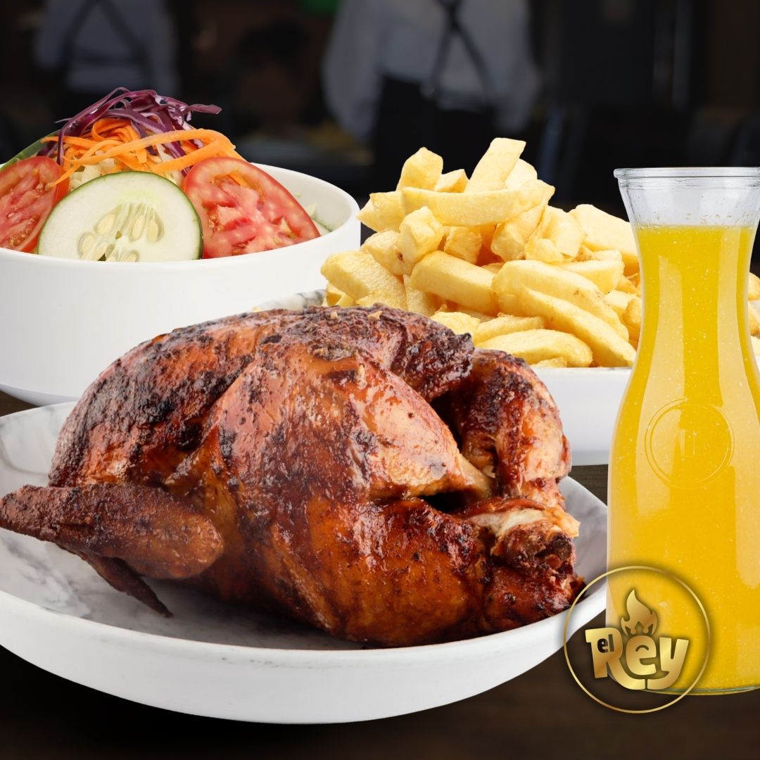1/2 POLLO A LA BRASA +PAPAS FRITAS + ENSALADA+ CREMAS + 1 TORTA+ 2 APERITIVOS A ESCOGER